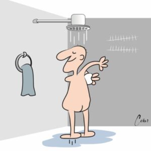 — Chuveiro de água quente?! – indignou-se o escrivão.